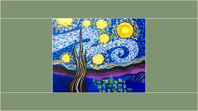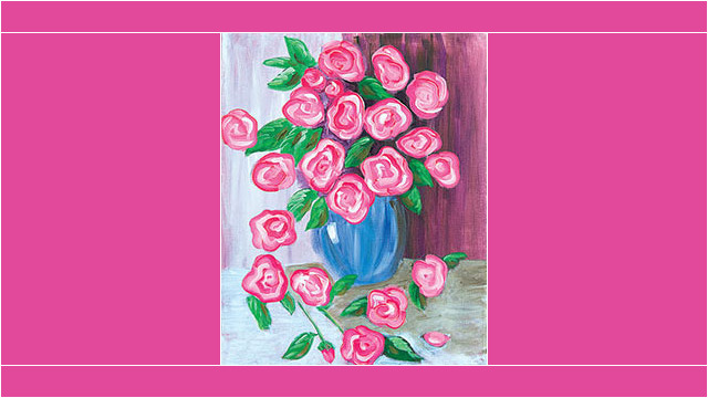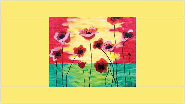 The price of your canvas includes the use of paints, brushes, easels, design patterns, painting supplies & studio time.